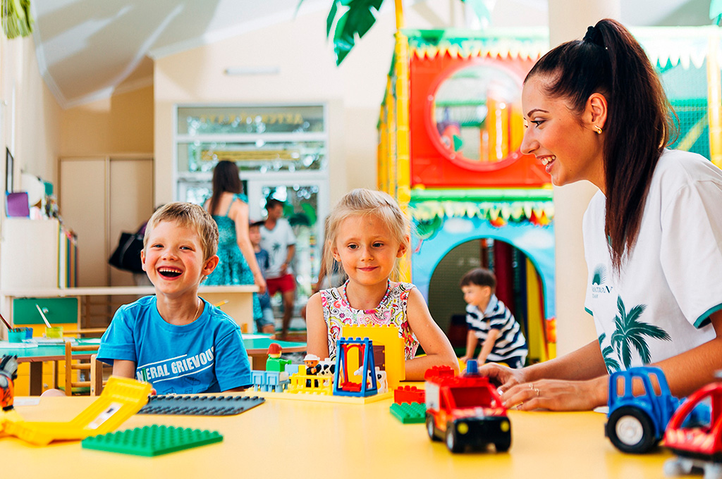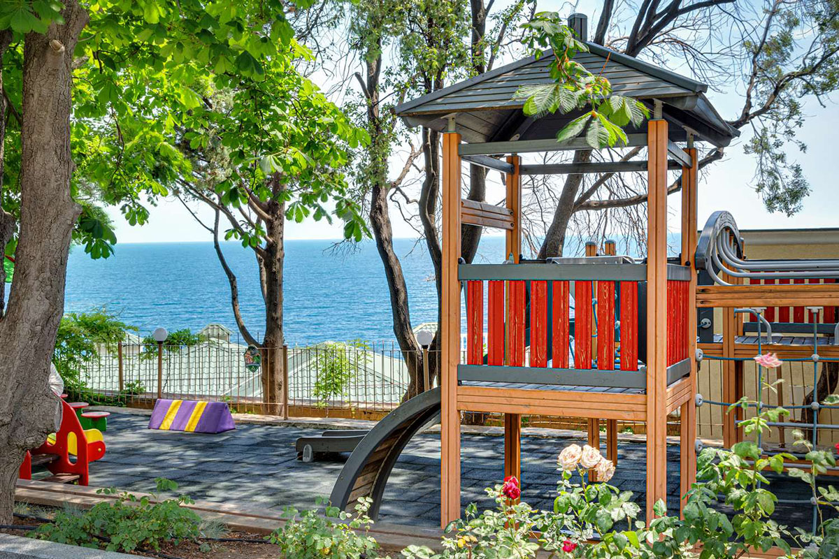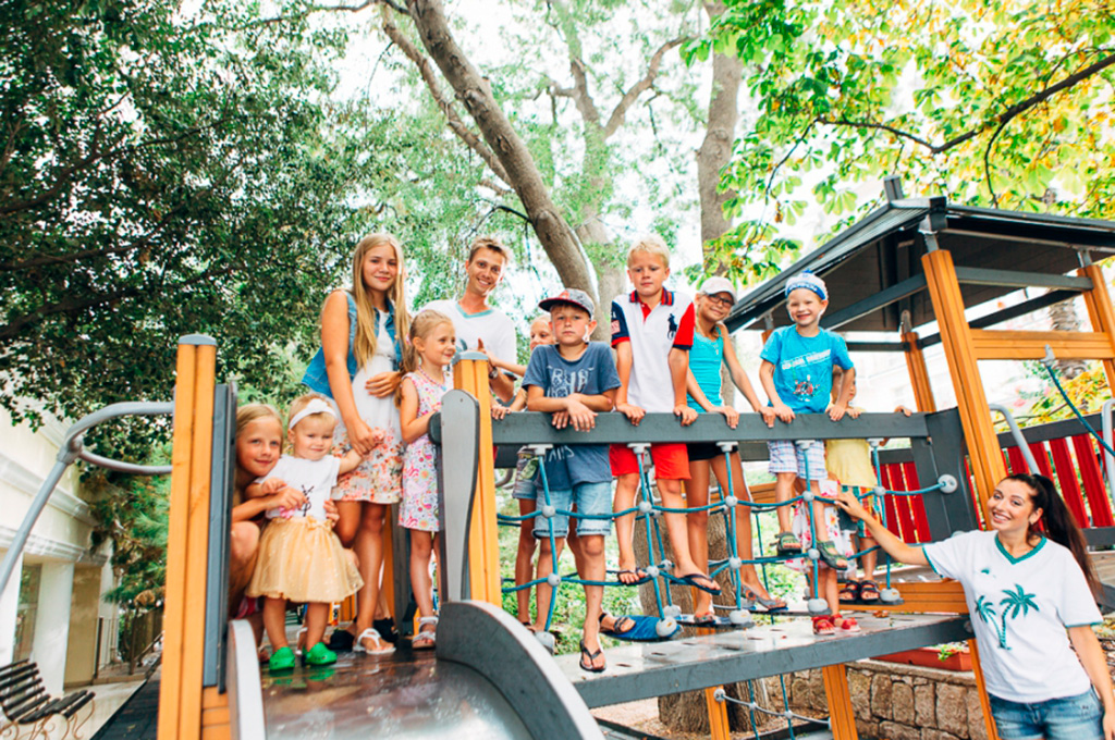 На территории отеля, в тени деревьев, располагается несколько детских площадок. Площадка «На островах» находится около клуба «Лимпопо». Площадка оборудована специальным безопасным покрытием и предназначена для детей от 3-х лет. На мягких пуфиках за столиками дети проводят образовательные игры и творческие мастер-классы. Площадка «Волшебный лес» находится в парке, который вечером, действительно, превращается в волшебный лес и начинает светиться разными красками. Здесь, в тени деревьев можно покачаться на удобных креслах-гамаках, почитать книгу. Площадка «Лесной порт» создана для любителей активного отдыха. Здесь детвору ждут скалодром, веревочный городок, лесенки из корабельных канатов, кресла-гамаки и гигантские сферические качели – мечта любого искателя приключений. Плюс к этому есть обустроенная площадка на пляже.